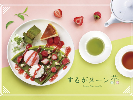 「駿河午茶(するがヌーン茶)」 以兩款以上的靜岡茶搭配甜點所組成的下午茶組合。在靜岡中部的「駿河地區」約有30間茶cafe、甜點店於秋冬期間提供這項限定菜單。